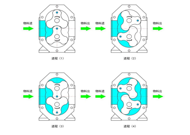 丝瓜视频18勿入以扭叶橡胶为核心,采用同步齿轮驱动下的不断旋转的两个螺旋形凸轮转子,从泵的进口将输送介质推送到泵的出口,由于转子橡胶叶轮与泵体之间具有密封性,泵的进出口腔室隔断,具有真空抽吸力,因采用三叶60°螺旋转子,泵在旋转一周内每个时刻的瞬时设计流量都是恒定的,几乎没有脉动和扰动。